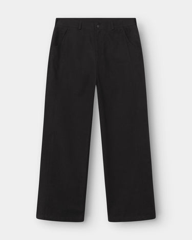 - Waistband with belt loops and single black button closure